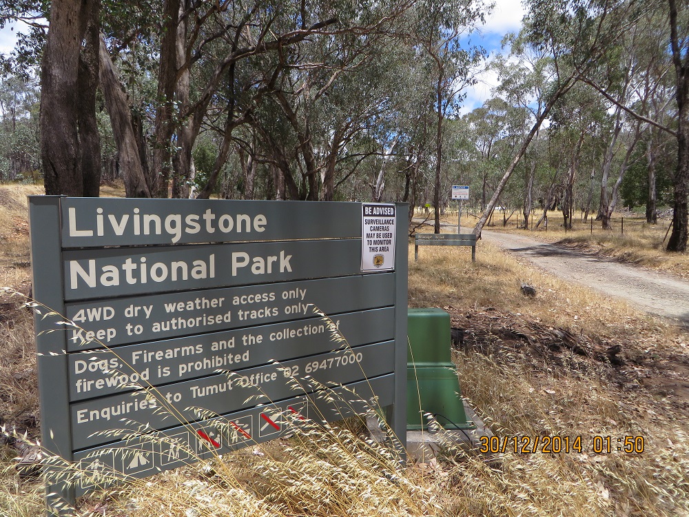 The Pocket Guide provides advice on how to access the Park, that is, travelling from Albury in the South or from Wagga Wagga in the North. My advice is that the best way to access the Livingstone National Park (for amateur radio purposes) is via the Holbrook Road either from Holbrook or from Wagga Wagga, and, if coming from Wagga Wagga, turn left into O’Briens Creek Road and travel six kilometres and then turn right onto Wrigley’s Road and travel three kilometres. I recommend the same if coming from Albury via Holbrook. You will take a right hand turn at O’Brien’s Creek Road. Coming from the South we found two other signposts for the Park. One of these is mentioned in the Pocket Guide. This requires taking Burrandana Road for about 10 kilometres and then taking a left hand turn at the Burandana Hall. We did this only to find that the Southern end of the Park is listed as Livingstone Conservation