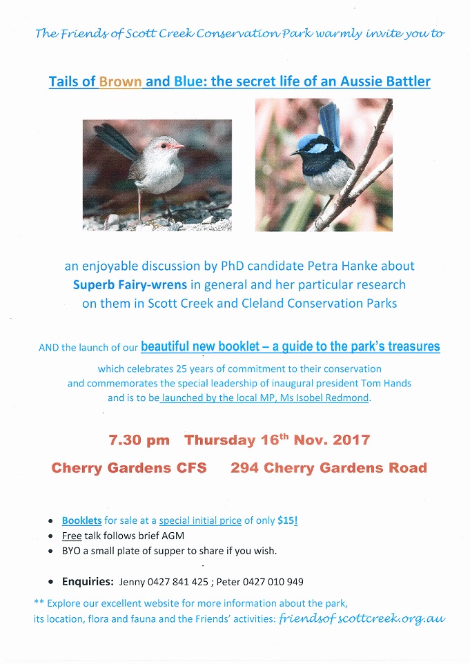Friends Published November 4, 2017 at 681 × 962 in Scott Creek Conservation Park, VKFF-0788 & 5CP-207, 2nd November 2017 ← Previous Next →