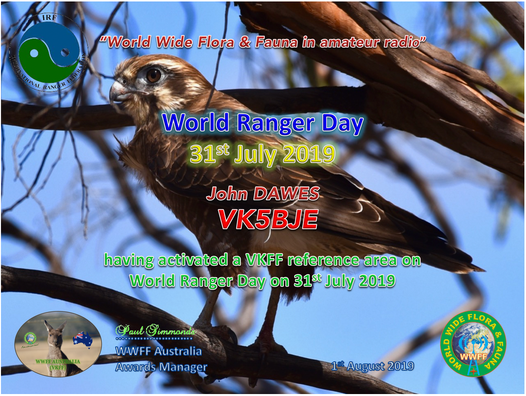 I thank all of the chasers who gave me a contact and was delighted with my 80 metre results of seven stations which included two from VK3 and Gerard, VK2IO/5 at the Mound Springs in outback South Australia. I was pleased to participate in World Ranger Day from Mylor Conservation Park. I enjoyed the time out in the park especially the friendly, familiar voices and the chasing of other park operators.