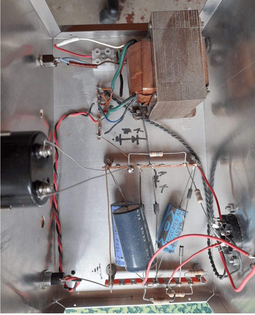 As well there is the learning associated with building the gear. Developing an understanding of circuits and their constituent parts, their roles and how they work and how to manage working with potentially lethal voltages was very important. There were only minimal requirements for sheet metal work. All my boxes were premade. I had to drill holes and make cut-outs for transformers. But I did learn some basic metal work skills at high school.
