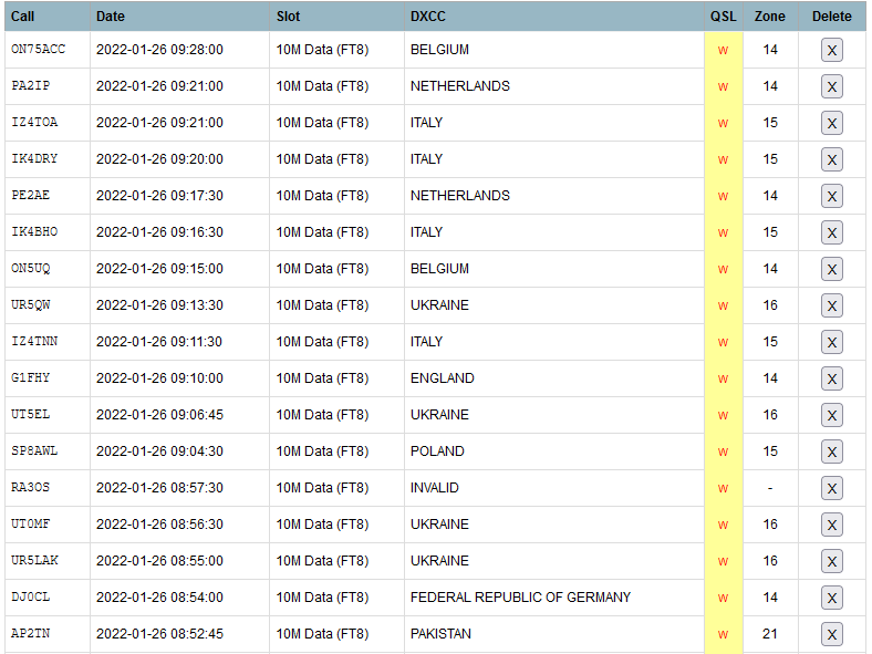 So I decided I would work on the 20, 15 and 10 metre bands over a number of time slots but the most active period was late afternoon and early evening when the 10 metre band opened to Europe. I enjoyed 102 contacts (qsos) with 17 countries. The late afternoon and early evening 10 metre band opening into Europe enabled my to increase my country count on this band. All contacts were made using the data mode of FT8.