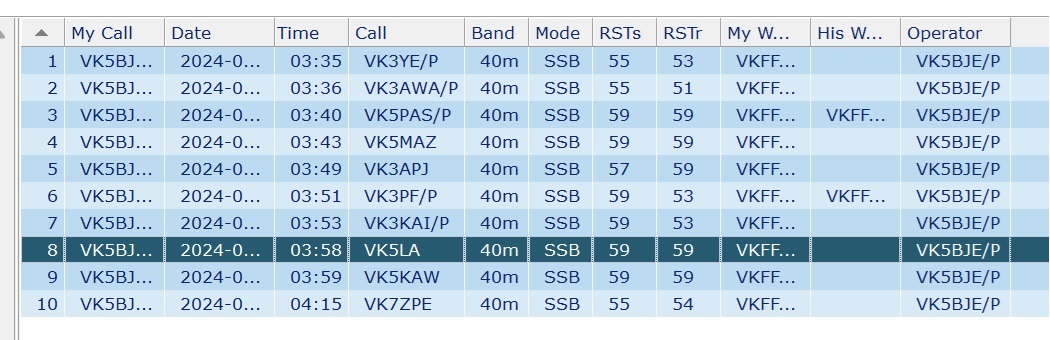 Thanks to all who gave me a call and especially Marija, VK5MAZ, who posted my presence in the park a number of times.