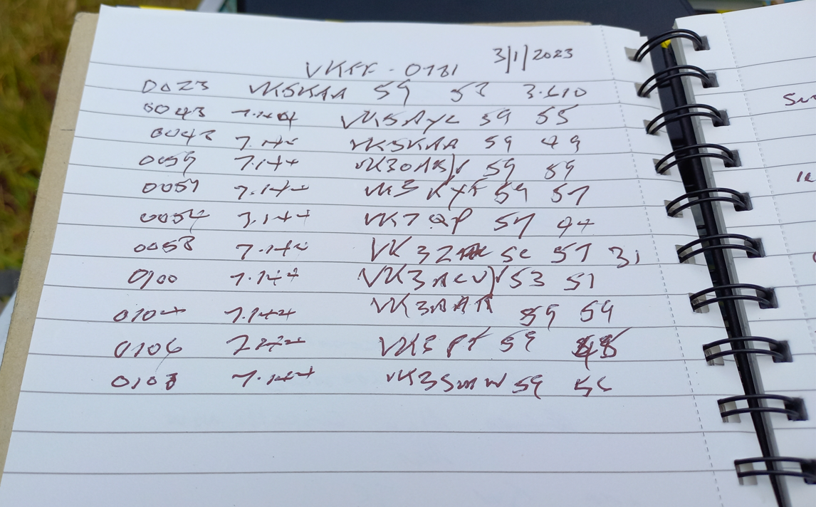 01:00 VK3ACU/P qrp 53 51 Jordan was using an IC705 with power being drawn from the internal battery. I was using my IC705 with an external LiFePO4 battery.